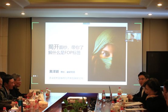 农业农村部食品与营养发展研究所黄泽颖博士从与百姓生活息息相关的食品包装切入,作了题为《揭开面纱,带你了解什么是FOP标签》的汇报。黄博士从预包装食品消费量增加影响国民健康引入,谈及我国食品营养成分表应用现状,重点作了关于FOP(包装正面标识)的研究汇报。报告结束后参会成员就如何更好选择健康食品与黄博士进行探讨。