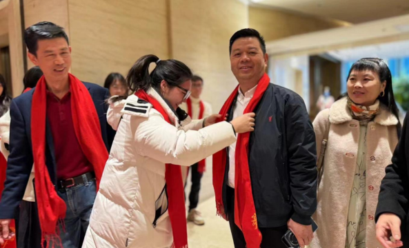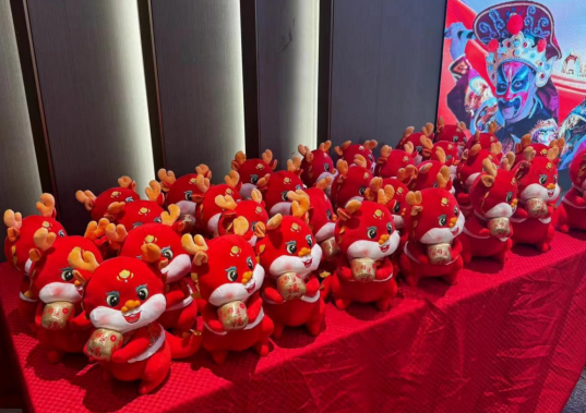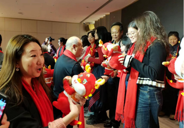 联欢会的氛围在“龙年行大运,喜送吉祥物”环节达到高潮,组委会为现场所有龙年本命年嘉宾准备了可爱喜庆的龙年吉祥物玩偶,50余名本命年嘉宾及小朋友披着红色喜庆的围巾,挥舞着龙年吉祥物,现场变成一片红色的欢乐海洋。