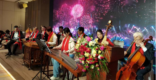联欢会在国歌合唱中拉开帷幕,现场气氛热烈而庄重。值得一提的是,为国歌合唱现场伴奏的,是北京潮人海外联谊会潮乐团,古典悠扬的潮乐与庄严雄壮的国歌合唱一起,独特而庄重,震撼人心。潮阳潮南濠江分会会长刘文雄向来宾致欢迎词并做分会年度工作报告,回顾了过去一年分会在团结潮人、传承文化、服务社会等方面所取得的成绩。北京潮人海外联谊会副会长兼秘书长张弛女士代表联谊会领导致辞,她带来了新当选的第八届理事会张章笋会长、林辉勇执行会长和其他领导对潮阳潮南濠江分会乡亲们的问候,并对分会会务工作的成绩予以肯定,提出了一些指导意见。