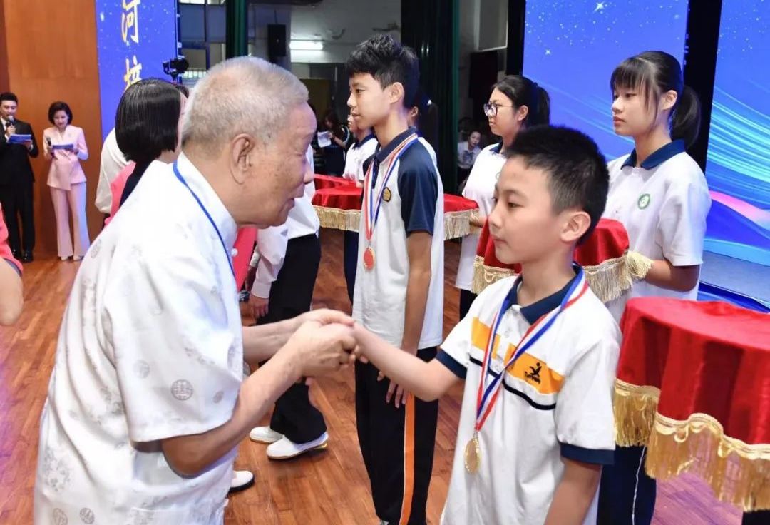 广东省政协原副主席、潮汕星河奖基金会创会会长林兴胜向本届获奖“小星星”颁奖