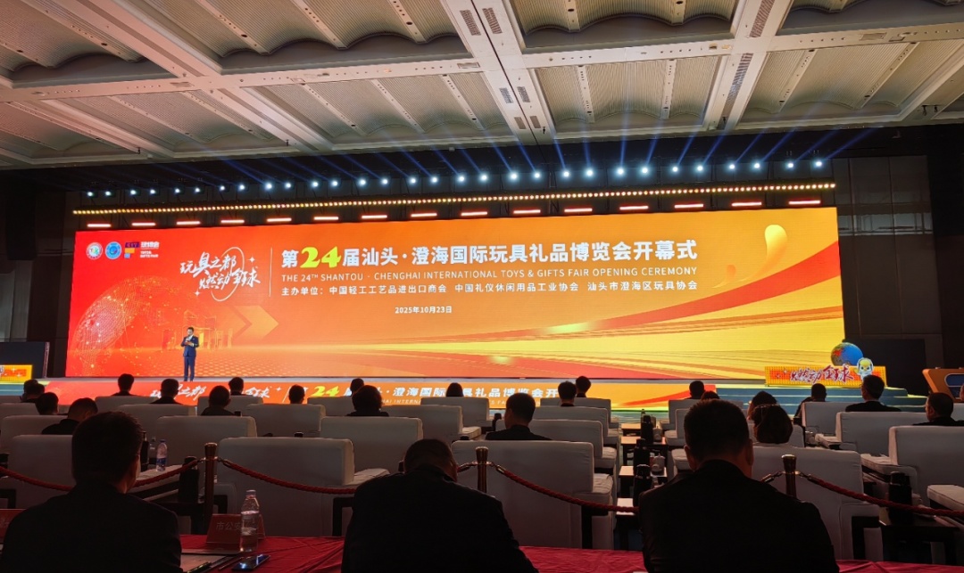 2025年10月23日,第24届汕头·澄海国际玩具礼品博览会在汕头国际会展中心盛大开幕,汕头市委书记温湛滨、澄海区委书记王楚彬、中国轻工工艺品进出口商会副会长李文锋、中国礼仪休闲用品工业协会理事长杨帆,汕头市澄海玩具协会及全球多个国家和地区的采购商、参展商代表齐聚现场。北京潮人海外联谊会澄海南澳分会应汕头市澄海区人民政府、澄海玩具协会的邀请,共同见证了这场“玩具之都”的年度盛会启幕。本次大会由著名主持人朱军主持。