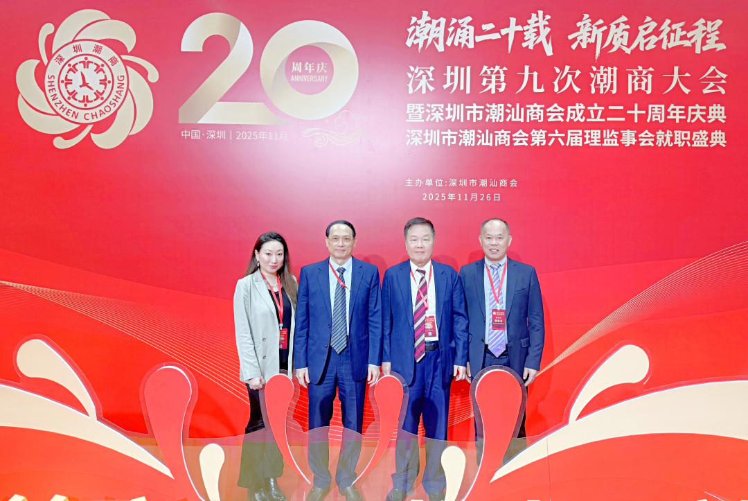 2025年11月26日,由深圳市潮汕商会主办的深圳第九次潮商大会暨深圳市潮汕商会成立二十周年庆典、第六届理监事会就职盛典在深圳福田会展中心隆重举行。本次盛会以"潮涌二十载,新质启征程"为主题,北京潮人海外联谊会会长张章笋、副会长陈章孟、副会长兼秘书长张弛出席庆典活动。