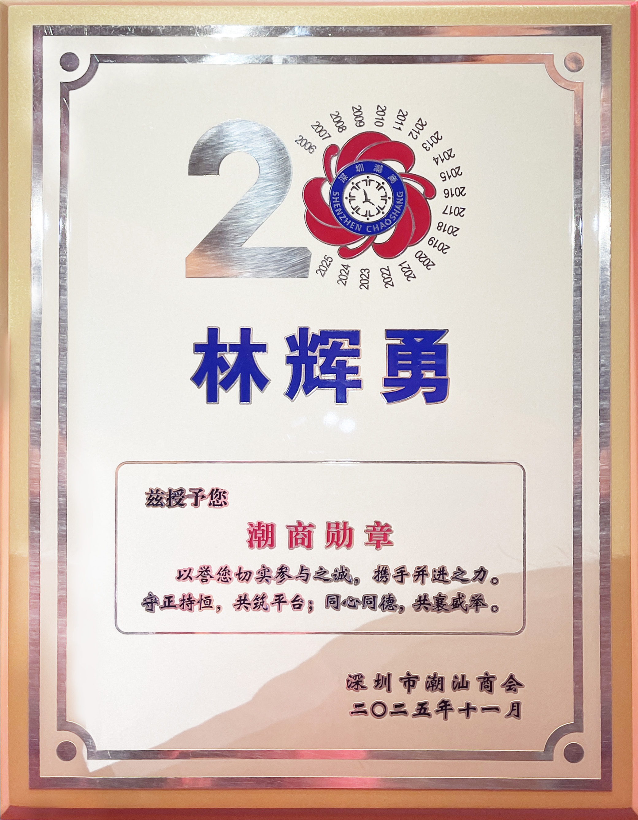 为致敬功勋人物的奉献与担当,凝聚潮商团结奋进的精神力量,大会举行贡献勋章及奖章颁奖仪式。美国潮商总会主席、北京潮人海外联谊会执行会长林辉勇获得“潮商勋章”。