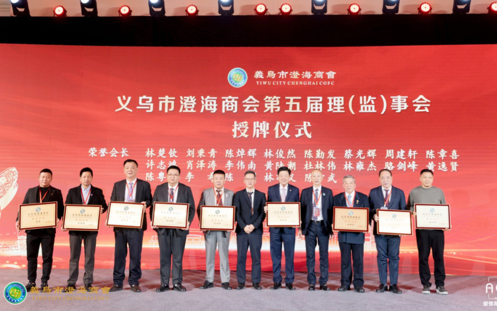 2025年12月26日,义乌市澄海商会第五届理(监)事会就职典礼仪式在义乌市幸福湖国际会议中心举行。北京潮人海外联谊会副会长兼澄海南澳分会会长李伟南、澄海南澳分会常务副会长王泽希、余伟进等应邀参加本次活动。