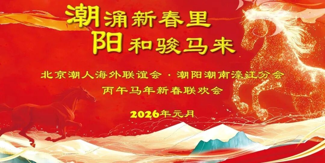 瑞雪迎佳节,潮韵聚京华。2026年1月18日,北京潮人海外联谊会潮阳潮南濠江分会“潮涌新春里·阳和骏马来”丙午年新春联欢会在北京隆重举行,来自各界的潮籍乡亲、领导嘉宾欢聚一堂,共话乡谊亲情,共绘发展蓝图,在浓浓的年味与乡情中迎接新一年的到来。