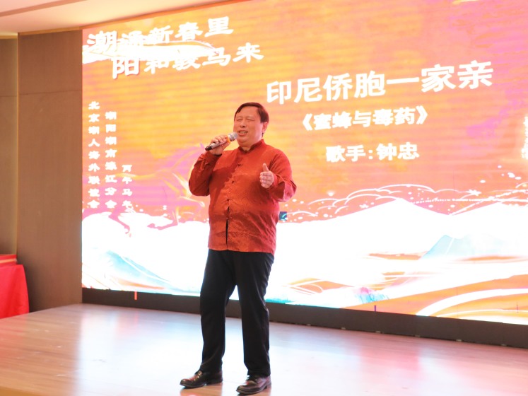 活动伊始,伴随潮乐社悠扬伴奏,全体与会人员起立齐唱《歌唱祖国》,表达了对伟大祖国的无限热爱与美好祝愿,也拉开了联欢会的序幕。