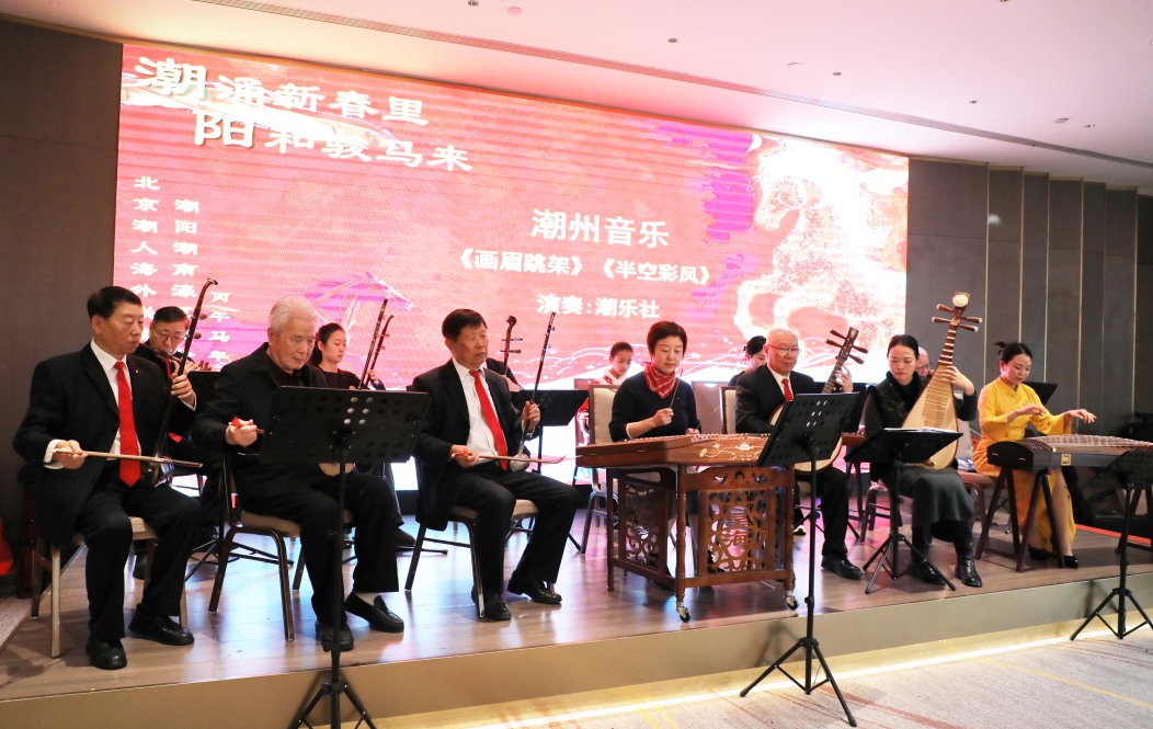 随后,北京潮人海外联谊会潮乐社继续带来经典喜庆潮乐《画眉跳架》和《半空彩凤》,悠扬婉转的潮乐旋律,韵味悠长,瞬间将现场观众带回故乡潮汕,让身处异乡的乡亲们深深感受到了家乡文化的独特魅力,引发了强烈的情感共鸣。