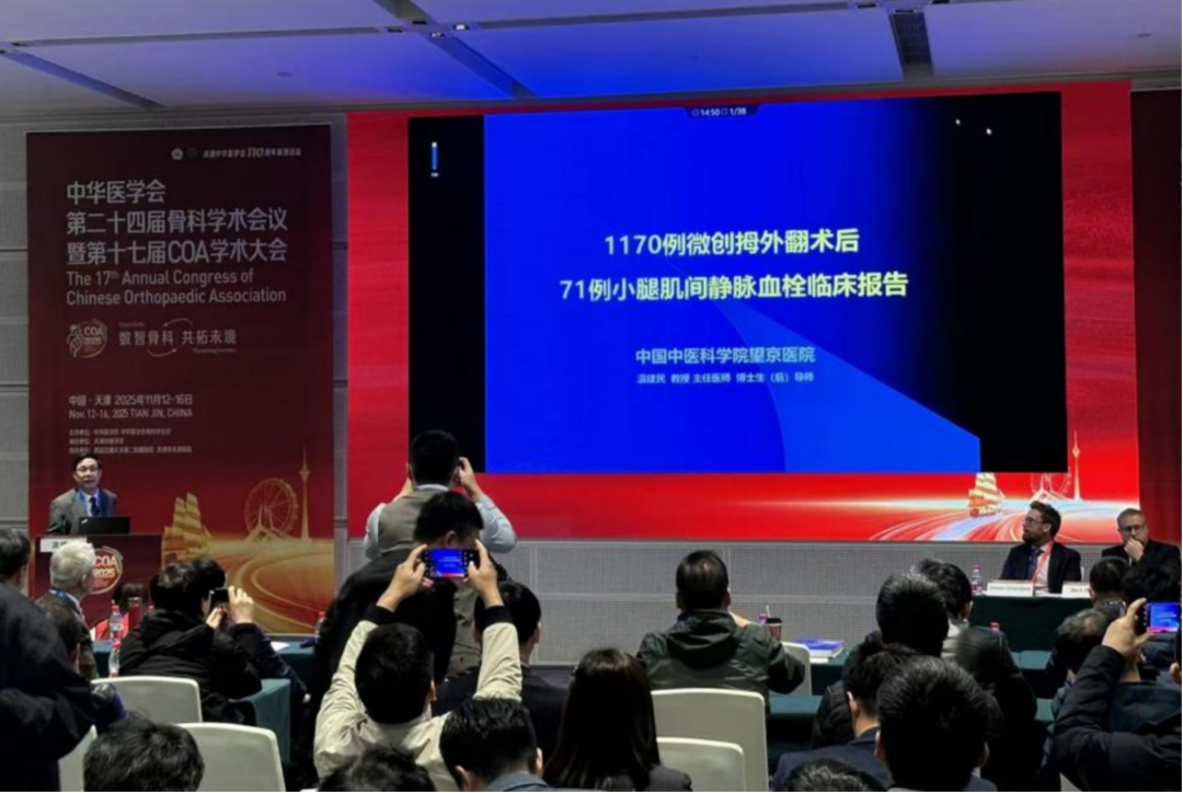 作为国家级老中医、骨伤科重点学科学术带头人,温建民教授在学术交流与传承领域同样成果斐然。2025年7月,在汕头举办的全国第二十三期中西医结合微创治疗拇外翻病症(温氏法)研修班上,温教授作学术报告,系统介绍温氏法的理论基础、技术要点和围手术期管理,积极推广这一微创技术。同年9月,在中华中医药学会外治分会2025年学术年会上,作为名誉主任委员的温教授强调,要深入挖掘先辈外治经验,促进国际交流与合作。2025年11月13日,温教授受邀出席在天津召开的中华医学会第二十四届骨科学术会议暨第十七届COA学术大会,在足踝会场以《1170例微创拇外翻术后71例小腿肌间静脉血栓临床报告》为题展开专题演讲,分享其团队的临床研究成果。